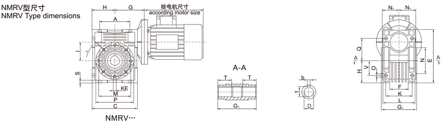 RV系列蝸輪減速機(jī)安裝尺寸及附加安裝尺寸表
