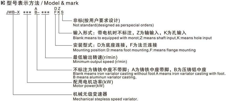 JWB-X系列無級變速機型號表示方法